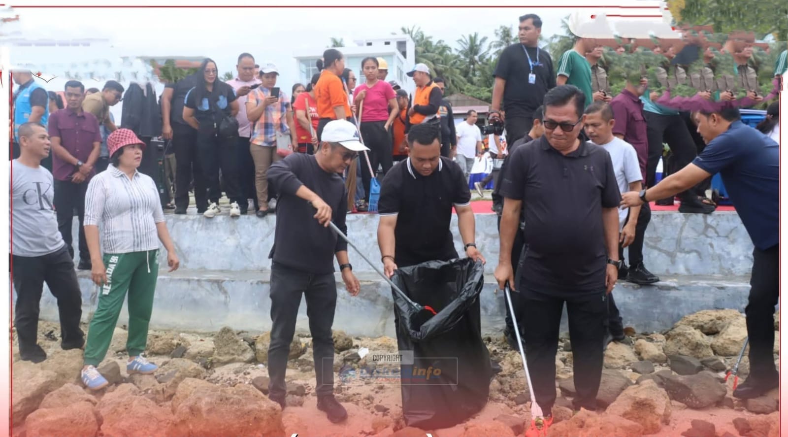 Bupati Nias bersama Kepala Daerah se Kepulauan Nias, jajaran pemerintah provinsi, serta perangkat daerah turut ambil bagian dalam kegiatan tersebut dengan membersihkan area pantai dan lingkungan sekitarnya.