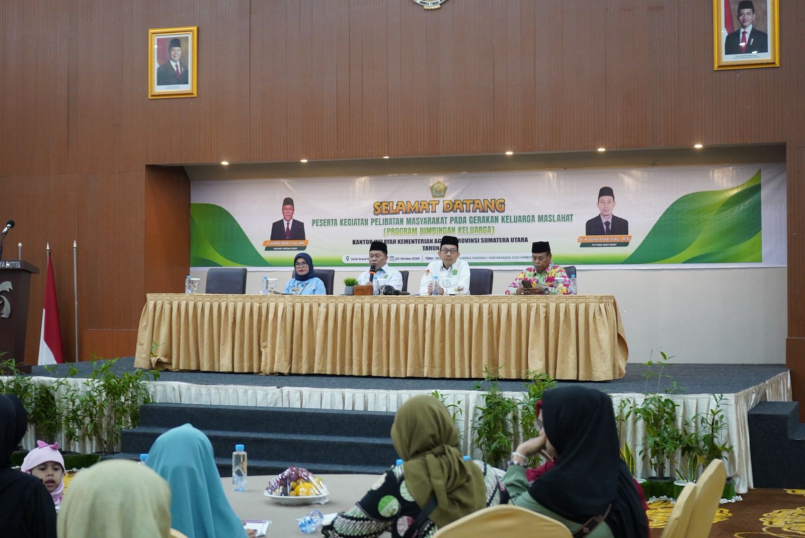 Kantor Wilayah Kementerian Agama Provinsi Sumatera Utara menyatukan langkah dalam mewujudkan Keluarga Maslahat. Kepala Kantor Wilayah Kementerian Agama Provinsi Sumatera Utara H. Ahmad Qosbi, S.Ag, MM mengatakan upaya memperkuat pondasi keluarga sebagai pilar utama dalam kesejahteraan bangsa, salah satunya dengan program Gerakan Keluarga Maslahat. Gerakan Keluarga Maslahat mewujudkan masyarakat dan bangsa yang beradab. Hal ini disampaikan saat memberikan sambutan pada kegiatan Pelibatan Masyarakat Pada Gerakan Keluarga Maslahat oleh Bidang Urusan Agama Islam dan Pembinaan Syariah di Hotel Grand Kanaya Medan, Senin (20/10).