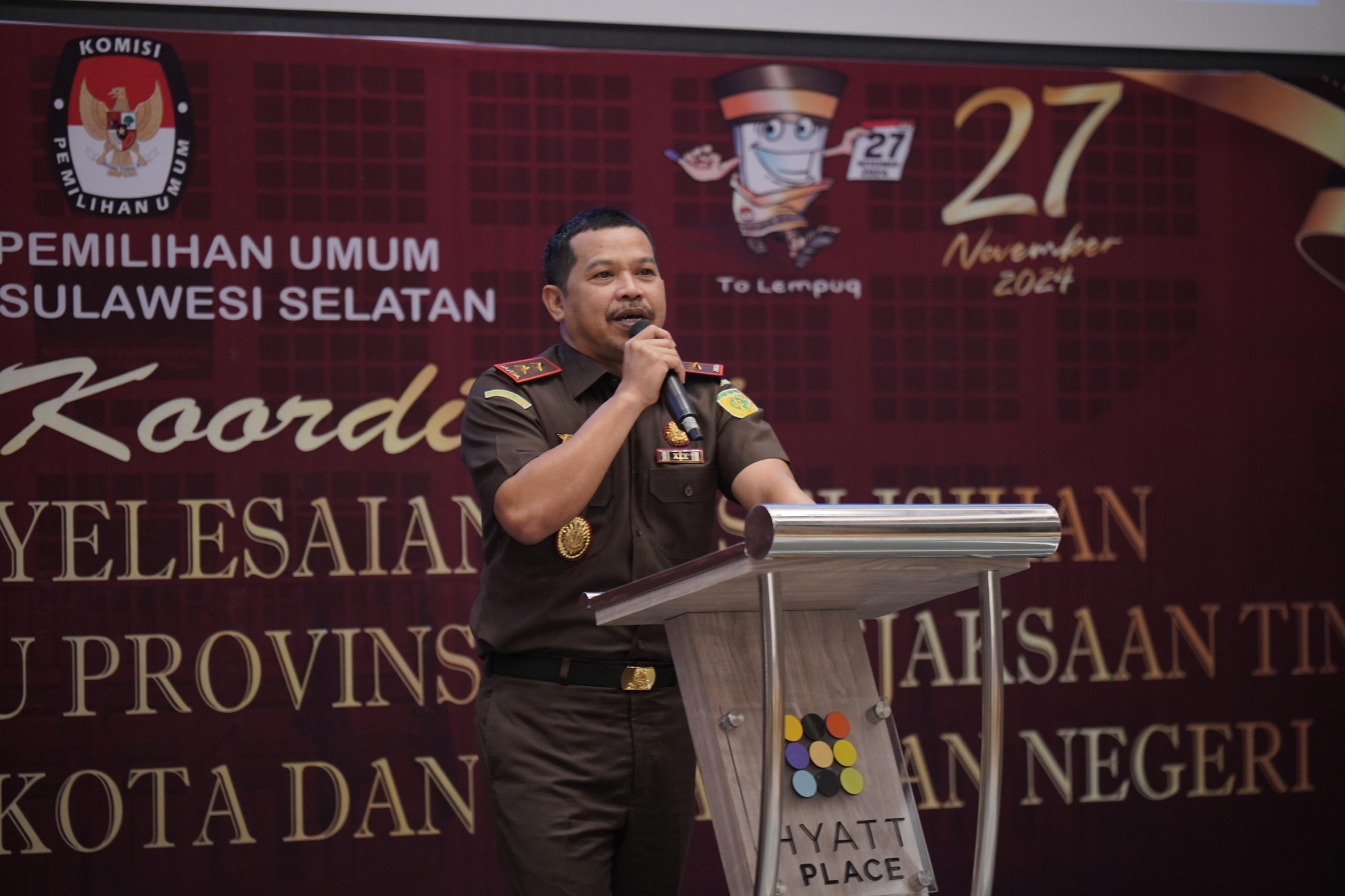 Kepala Kejaksaan Tinggi Sulawesi Selatan, Agus Salim menghadiri Rapat Koordinasi Pendampingan Penyelesaian Perselisihan Hasil Pemilihan antara KPU Provinsi dan Kejaksaan Tinggi serta KPU Kabupaten/Kota dan Kejari di Hotel Hyatt Place Makassar, Senin (6/1/2025).