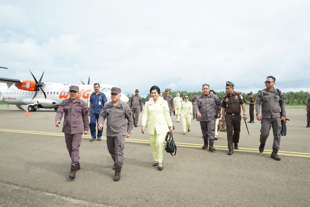 Saat tiba di bandara binaka Gunung Sitoli, Kajati Sumut beserta Asisten Intelijen, Asisten Pengawasan, Asisten Pembinaan, Asisten Pidana Khusus, Asisten Pidana Militer, Asisten Perdata Dan Tata Usaha Negara, Kabag Tata Usaha hingga Kasi Penerangan Hukum di sambut Kajari Gunung Sitoli Parada Situmorang, SH.,MH beserta Kajari Nias Selatan Edmon Purba, SH.,MH dan seluruh jajaran.