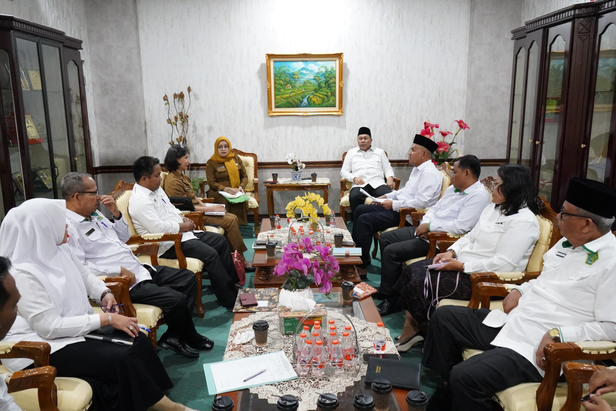 Kepala Kantor Wilayah Kementerian Agama Provinsi Sumatera Utara H. Ahmad Qosbi, S.Ag, MM menerima kunjungan Dinas Kesehatan Provinsi Sumatera Utara yang diwakili Drg. Suhailatun Nafisah Rangkuti dan Flora Kaban di ruang audiensi Kanwil Kemenagsu, Senin (15/9/2025).