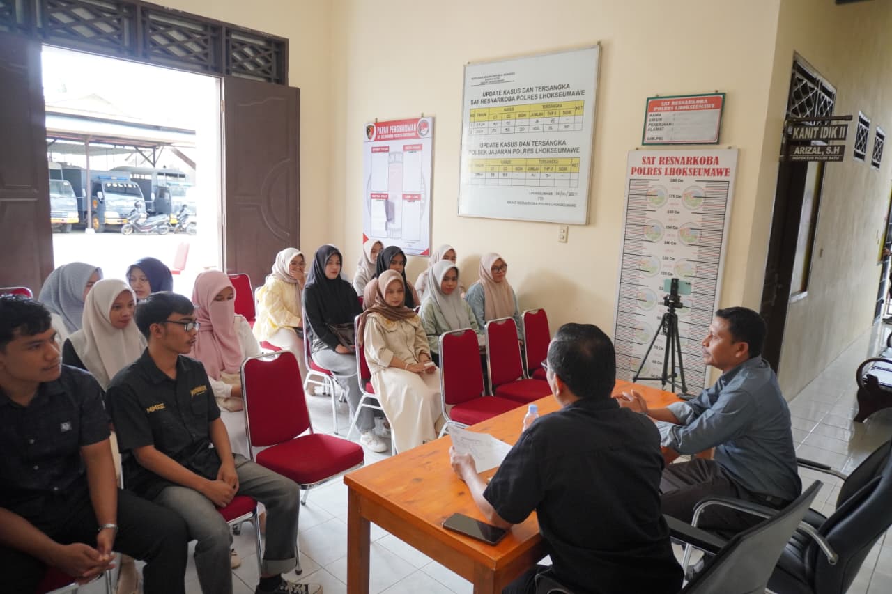 Satuan Reserse Narkoba (Satres narkoba) Polres Lhokseumawe bersama Cabang Dinas Pendidikan Wilayah Kota Lhokseumawe menggelar kegiatan sosialisasi pencegahan narkoba tingkat sekolah menengah di Aula Kantor Dinas Pendidikan, Jalan Buloh Blang Ara – Cunda, Kecamatan Muara Dua, Kota Lhokseumawe, Rabu (24/9/2025).