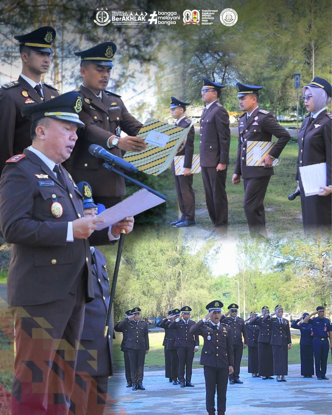 kita diteguhkan terus dalam memberi keadilan yang menjadi harapan bagi rakyat. Dengan integritas, profesionalitas, dan keberanian, Kejaksaan akan terus melangkah pasti, mengawal negeri menuju masa depan yang lebih adil, bermartabat, dan sejahtera. Kegiatan Upacara berjalan dengan baik dan lancar.