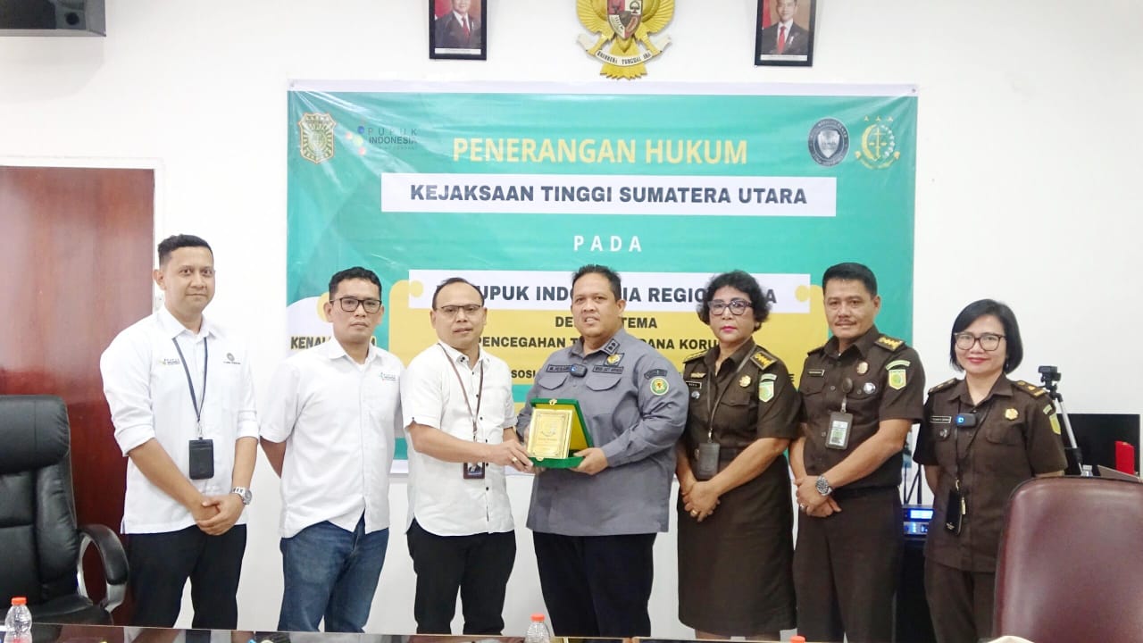 Sebagai wujud dukungan dalam mewujudkan ketahanan pangan di wilayah Sumatera Utara, Kejaksaan Tinggi Sumatera Utara melakukan mitigasi tindak pidana korupsi pada distribusi pupuk bersubsidi kepada petani dengan melaksanakan penerangan hukum pada PT.Pupuk Indonesia Regional 1A Medan di Jalan Gajah Mada, Kota Medan.(17/09/25)