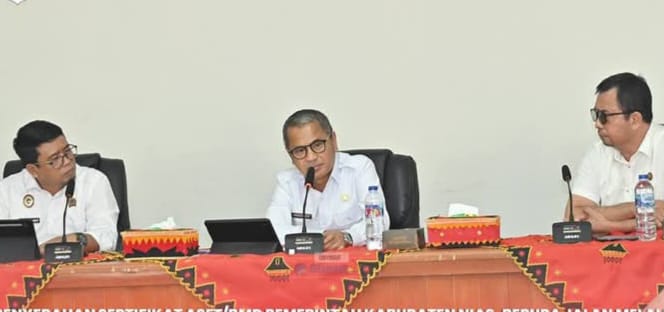 Bupati Nias Ya’atulo Gulo,S.E, S.H, M.Si hadiri kegiatan Penyerahan Sertifikat Aset/BMD Pemerintah Kabupaten Nias, berupa jalan melalui Program Pendaftaran Tanah Sistematis Lengkap (PTSL) Tahun Anggaran 2024 oleh Kantor Pertanahan Kabupaten Nias, bertempat di Ruang Rapat Gido, Lt. 3 Kantor Bupati Nias, Rabu (05/02/2025).