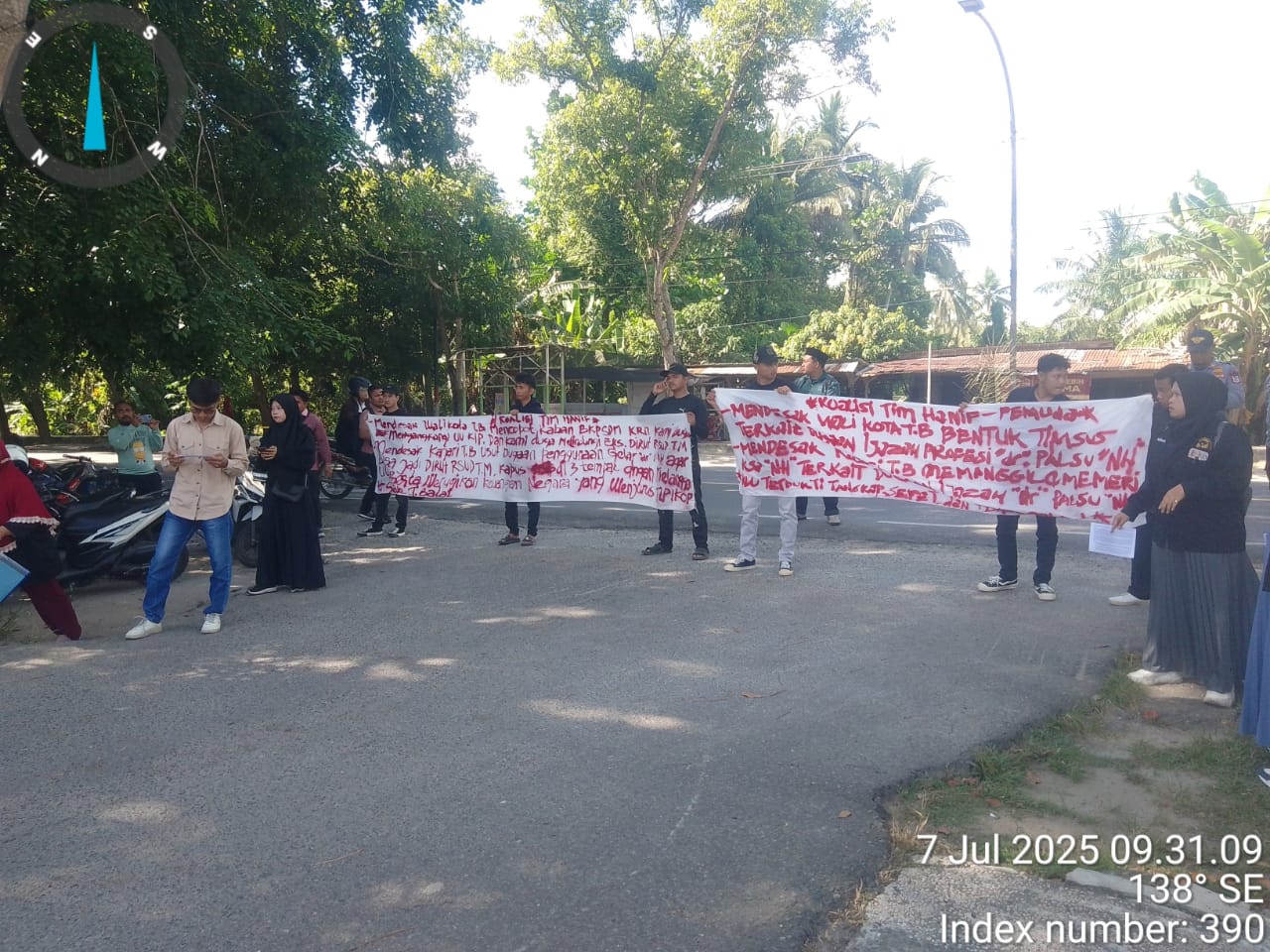 Koalisi Tim Hanif bersama Pemuda kembali lagi melakukan aksi unjuk rasa di depan kantor wali kota tanjungbalai terkait dugaan ijazah gelar dr palsu yang dilakukan oknum ASN yang ada di lingkungan Pemkot tanjungbalai, Senin (7/7/2025)