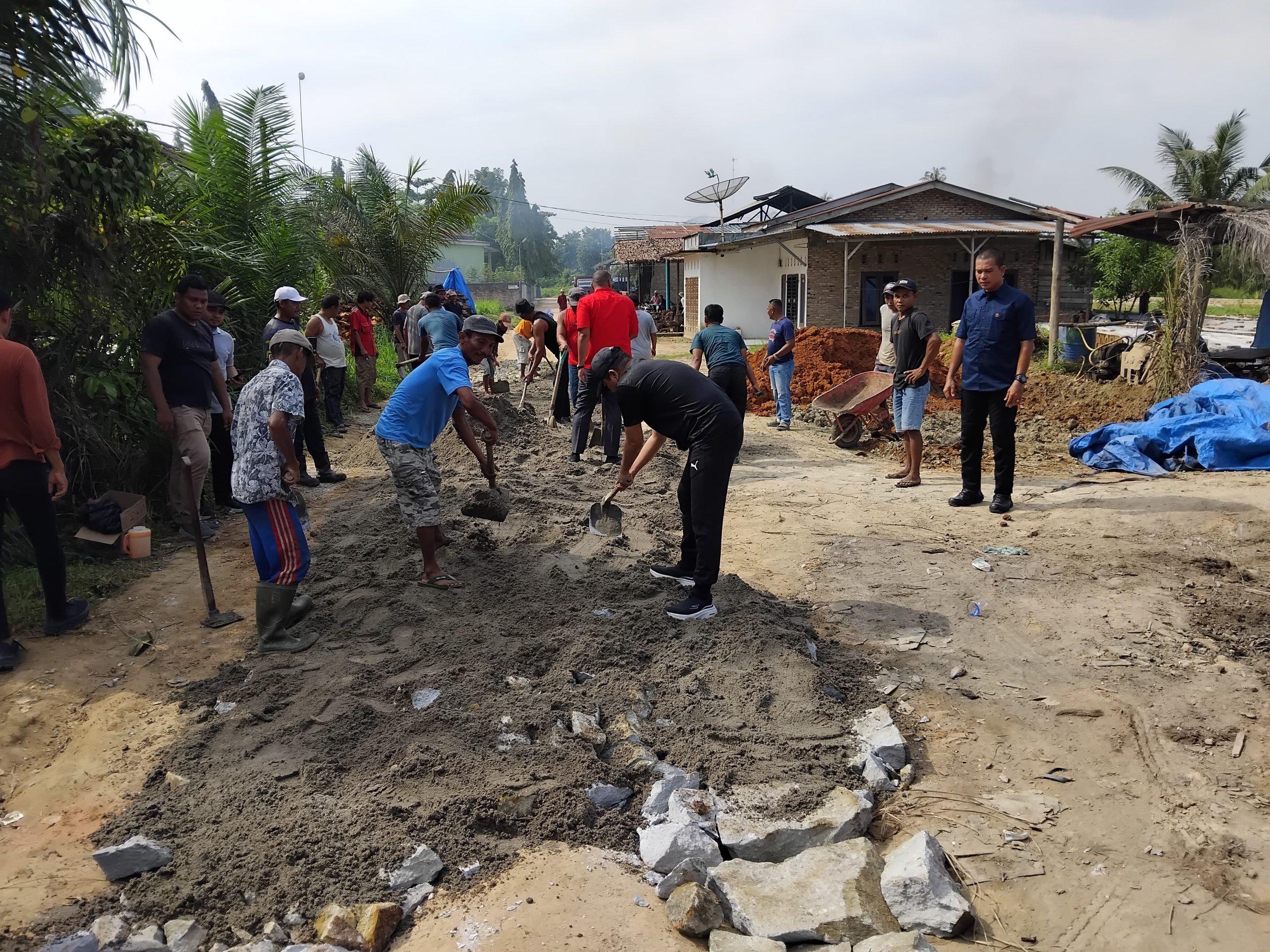 Calon Wakil Gubernur Sumatera Utara (Cawagubsu) H. Hasan Basri Sagala SAg, MSi melakukan gotong royong (Gotroy) dengan masyarakat Kelurahan Bunut Barat Kecamatan Kota Kisaran Barat Kabupaten Asahan, Minggu (27/10).