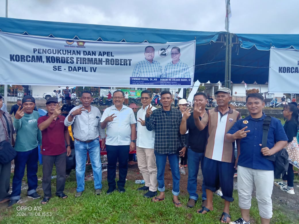 “Sebagai koordinator wilayah Dapil VI Kepulauan Batu, menyampaikan tidak ada apa-apanya kami tanpa dukungan dari masyarakat, simpatisan, pendukung, Korcam dan Kordes dalam mendukung dan memenangkan pasangan Firman-Robert.