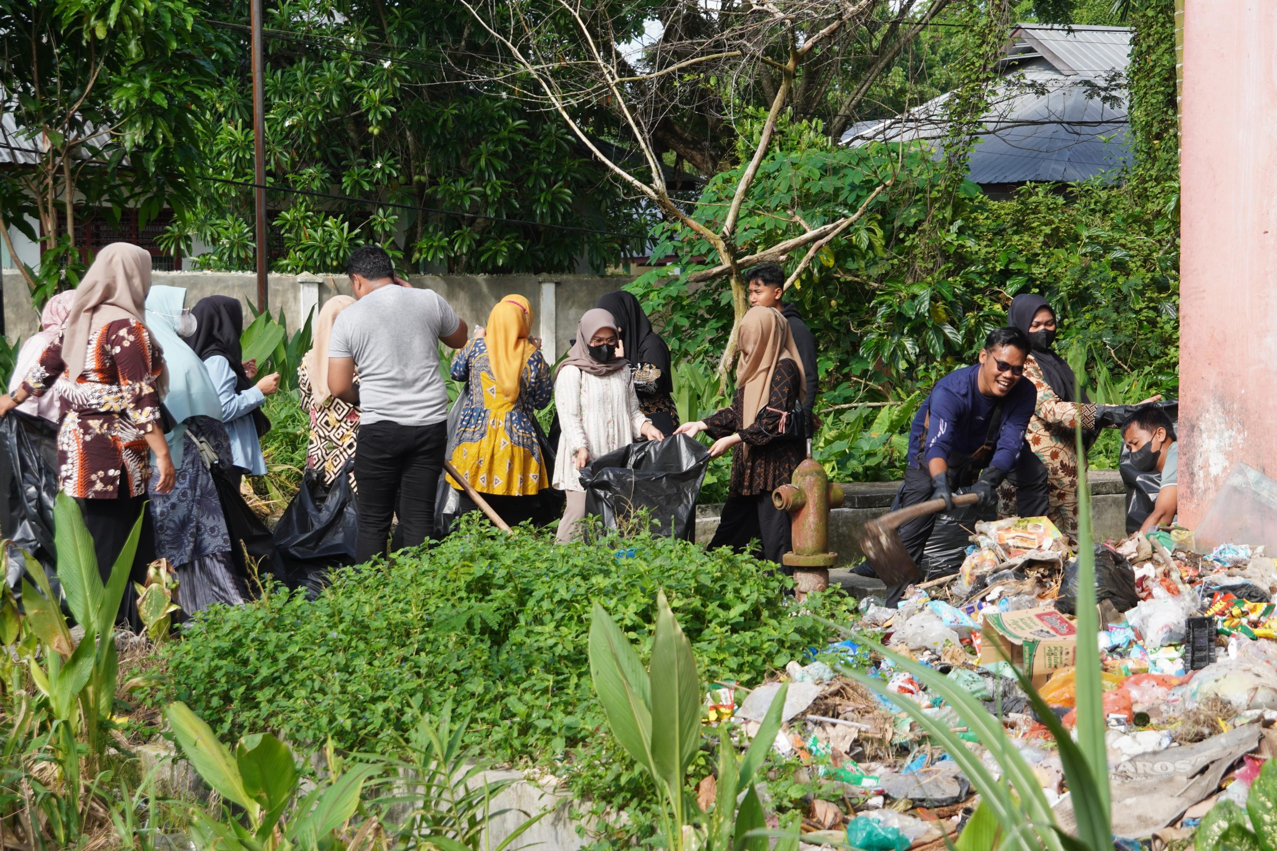 Kegiatan gotong royong sudah dimulai sejak pukul 08.00 WIB, OPD terkait bersama warga mulai melakukan giat dengan membersihkan tumpukan sampah, menguras tandon, membersihkan drainase, memotong rumput dan membersihkan sampah yang berserakan di sekitaran Rusunawa
