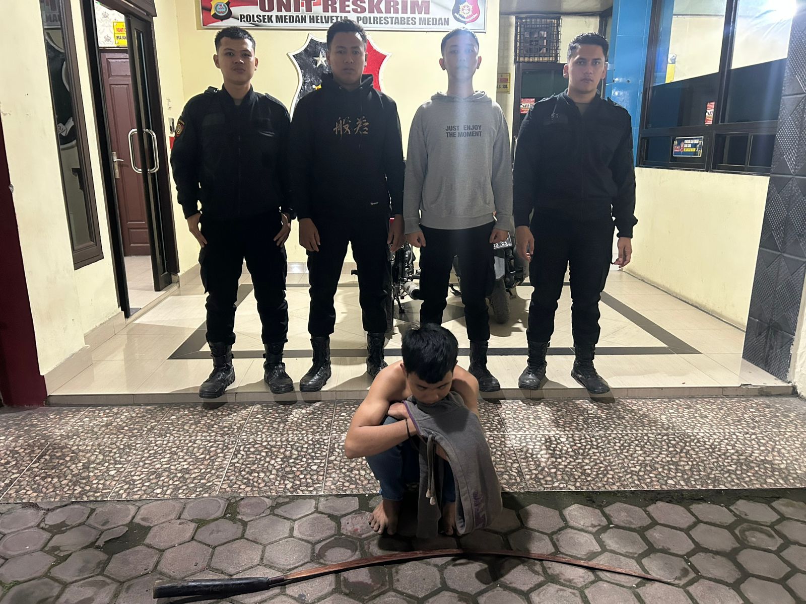 Dalam penangkapan, petugas juga menyita sebilah celurit yang diduga digunakan dalam tawuran tersebut. Pelaku beserta barang bukti segera dibawa ke Polsek Medan Helvetia untuk proses hukum lebih lanjut.