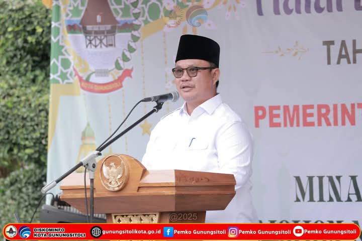 Dalam momen penuh kebahagiaan ini, saya Wali Kota Gunungsitoli dan juga sebagai pribadi dan keluarga mengucapkan selamat hari raya Idul Fitri 1446 Hijriah/2025 Miladiyah kepada seluruh umat Islam di Kota Gunungsitoli. Saya berharap, bahwa momen hari yang penuh kemenangan ini menjadi kesempatan buat kita semua untuk terus memperkokoh tali silaturahmi antara para pemangku kepentingan, para unsur pemerintahan untuk terus bekerja bersama-sama menjadikan Gunungsitoli lebih hebat kedepan. Hal tersebut di sampaikan Wali Kota saat menyampaikan kata sambutan pada acara Halal Bi Halal Idul Fitri Pemerintah Kota Gunungsitoli Tahun 2025.