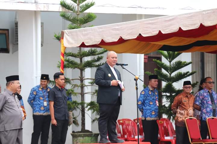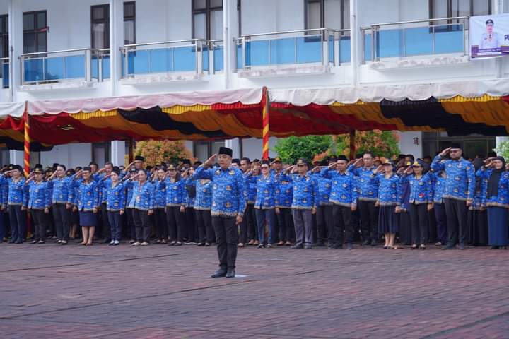 Wali Kota Gunungsitoli Sowa’a Laoli, S.E., M.Si bertindak sebagai Pembina Upacara pada Peringatan Hari Ulang Tahun (HUT) Korps Pegawai Republik Indonesia (KORPRI) Ke-53 Tahun 2024, bertempat di Lapangan Upacara Kantor Wali Kota Gunungsitoli, Jumat (29/11/2024).