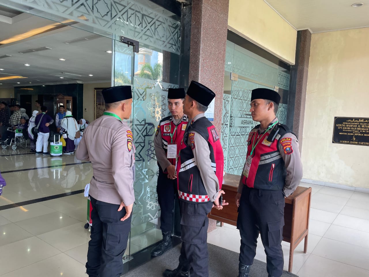 Dalam pantauan team media haji dilapangan dalam penangan penerimaan calhaj dan keluarga calhaj yang datang di asrama haji pihak pengamanan sangat santun dan ramah menyampaikan hak pengunjung didalam asrama haji khususnya di Aula 2 dan Aula satu madinatul Hujjaj, keramahan para petugas membuat kenyamanan para calhaj sangat baik.