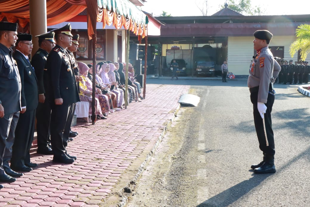 Upacara dipimpin langsung oleh Kapolres Simeulue, AKBP Rosef Efendi, S.I.K., M.H., selaku Inspektur Upacara. Hadir dalam kegiatan tersebut sejumlah pejabat daerah, di antaranya Wakil Bupati Simeulue Nusar Amin,S.Pd. mewakili Bupati Simeulue, Kasdim 0115/Simeulue Kapten Inf. Agus Nababan, mewakili Dandim 0115/Simeulue Danden Pomal Lanal Simeulue Kapten Laut (PM) Sukardi, mewakili Danlanal Simeulue Kasi PB3R Kejari Simeulue Heri Iqbal, S.H., mewakili Kajari Simeulue Kadis Perhubungan Simeulue Mulyawan Rohas, ST Kasi Pembinaan Umum Satpol PP Simeulue Syahril Alamsyah, S.H. Para pejabat utama Polres Simeulue serta tamu undangan lainnya.