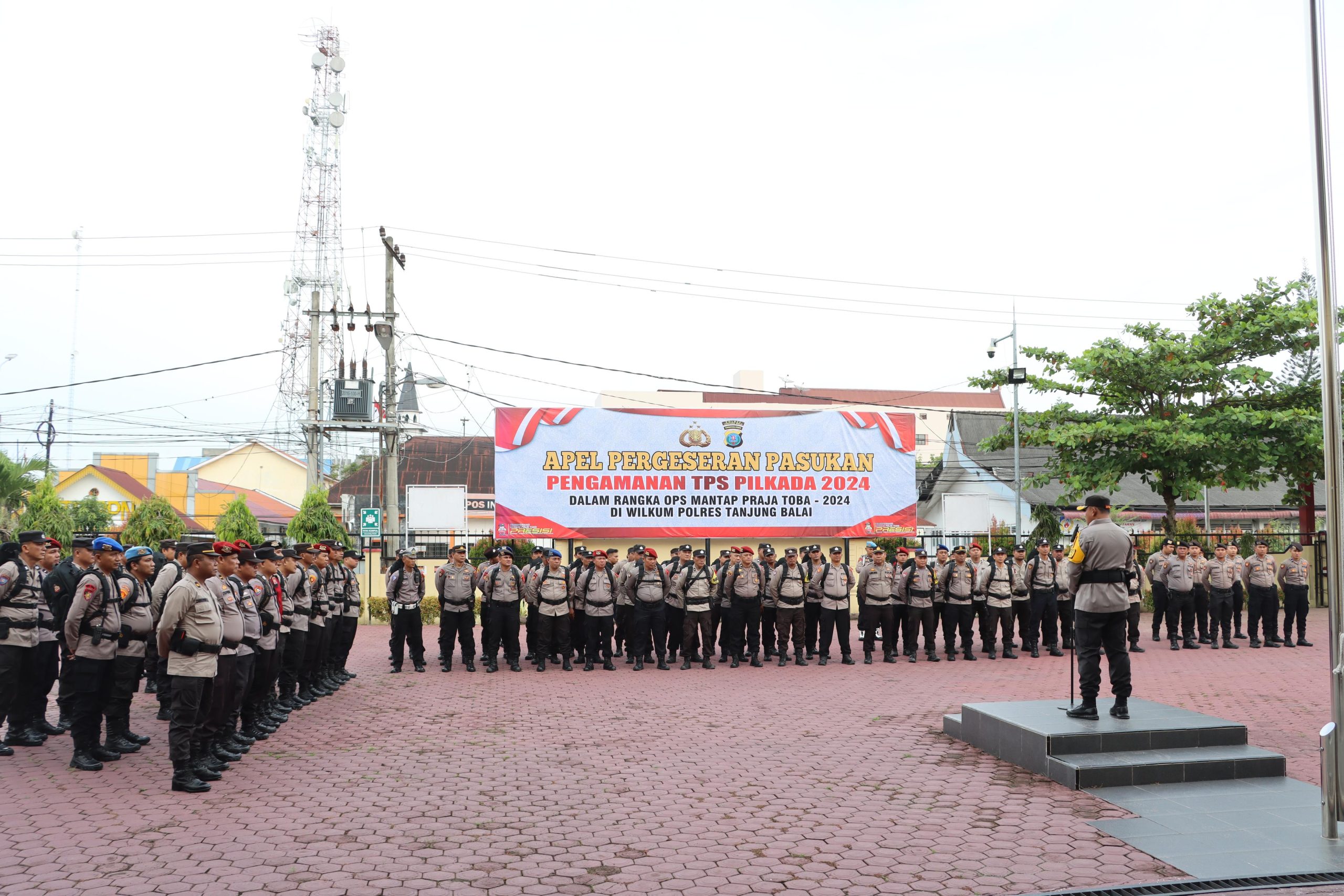 Polres Tanjungbalai melaksanakan Apel pergeseran pasukan pengamanan TPS Pilkada 2024 dalam rangka Ops Mantap Praja Toba 2024.