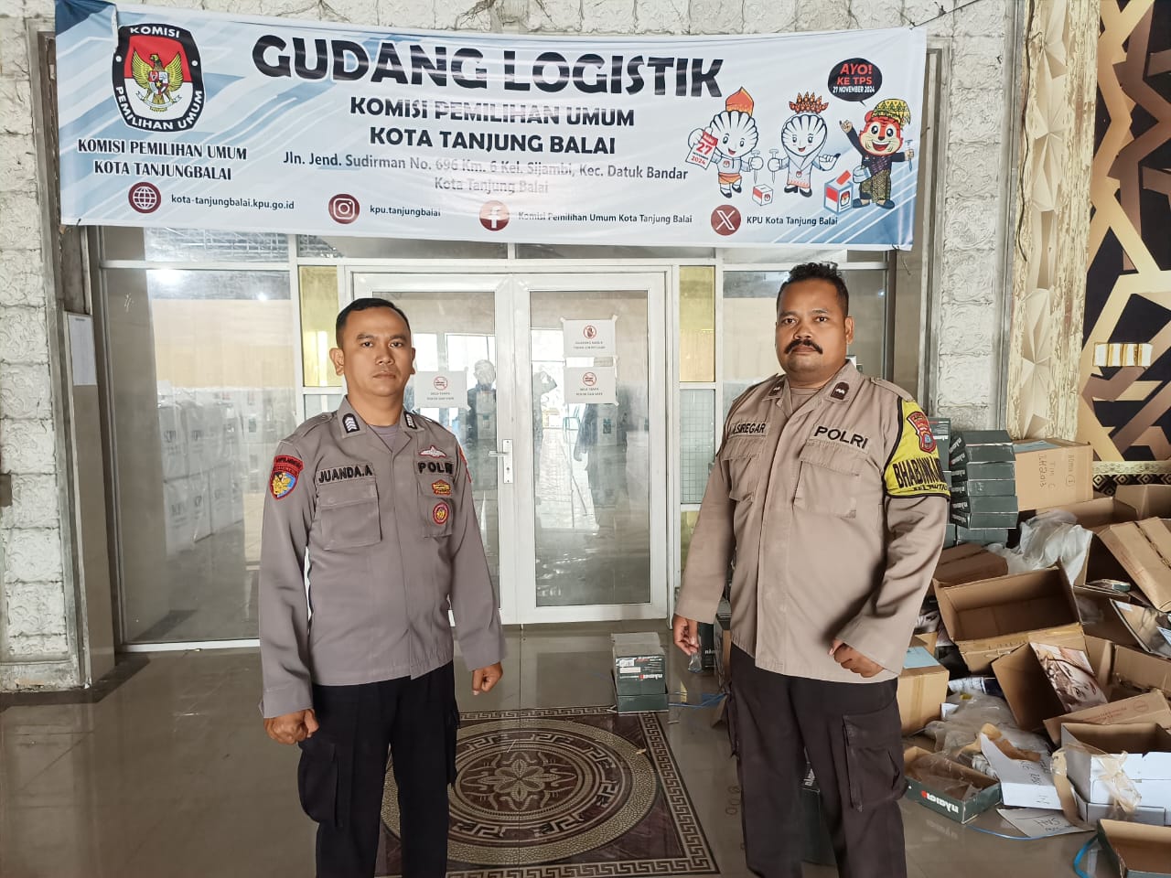Satgas Preventif Operasi Mantap Praja Toba 2024 Polres Tanjungbalai menyiagakan Personel untuk melaksanakan pengamanan di Gudang Logistik Komisi Pemilihan Umum (KPU) / Aula Gedung ATC (Asia Treatment Centre), jalan Jendral Sudirman, Km. 6, Kelurahan Sijambi, Kecamatan Datuk Bandar, Kota Tanjung Balai, Kamis Sampai dengan hari Jumat, (05-06/12/2024) mulai pukul 08.00 sampai pukul 08.00 Wib (1X24 Jam).