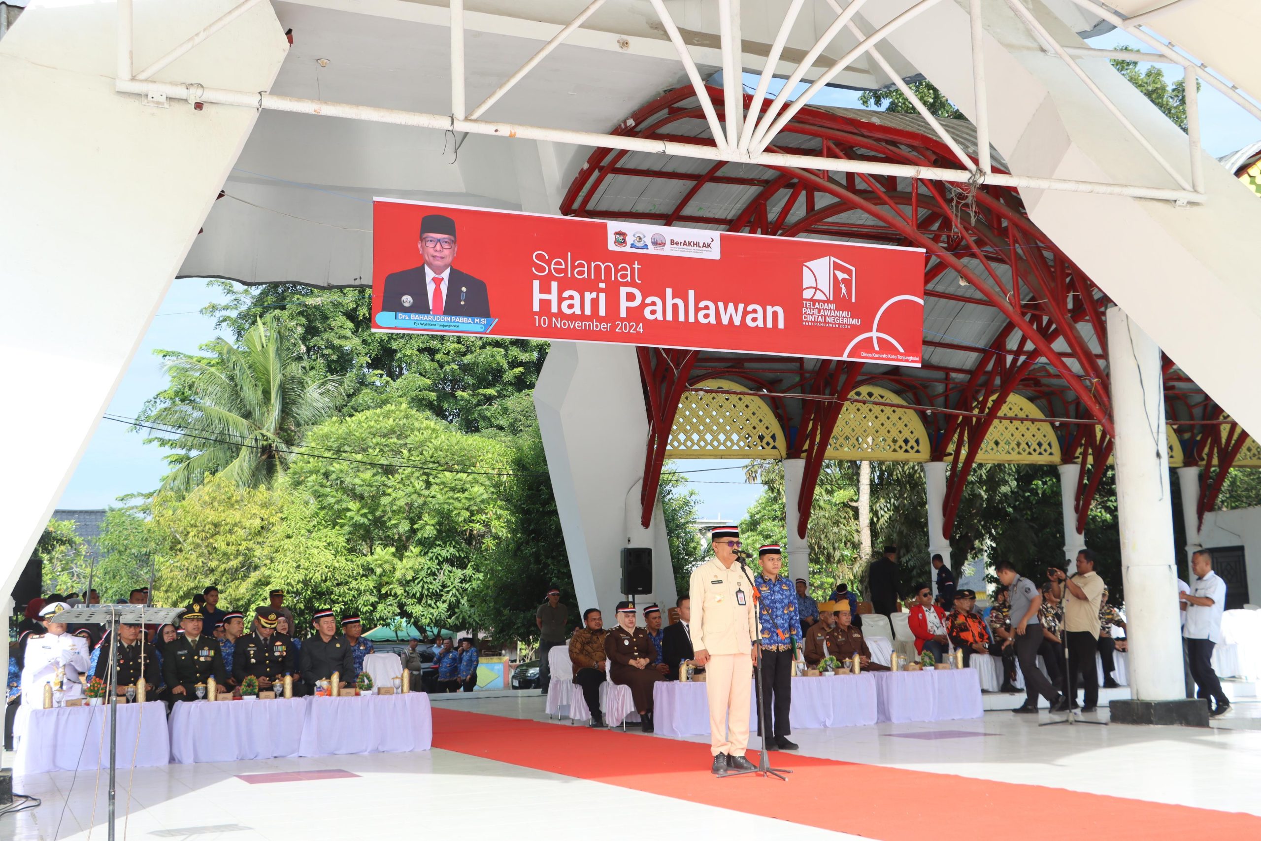 Tambahnya, “Pada akhirnya jangan pernah lelah untuk berbuat yang terbaik meneladani dan mewarisi nilai-nilai kepahlawanan. Mari kita implementasikan sifat-sifat kepahlawanan dan kesetiakawanan sosial di tengah masyarakat mulai dari diri kita, mulai dari hal yang paling kecil yang dapat dilakukan di sekitar kita untuk kemaslahatan masyarakat. Demikian sambutan singkat saya dalam rangka Peringatan Hari Pahlawan Tahun 2024. Semoga kita semua mampu meneladani dan menanamkan nilai-nilai kepahlawanan serta mewariskannya kepada generasi yang akan datang. “Tandas Pabba.