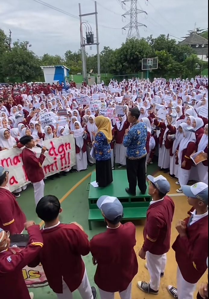 Sebanyak 850 siswa Madrasah Aliyah Negeri (MAN) 2 Kota Bekasi mengadakan aksi damai pada Senin (17/2/2025) sebagai bentuk protes terhadap Kepala Sekolah, Nina Indriana. Mereka menuntut kejelasan terkait prosesi wisuda dan fasilitas sekolah yang dianggap tidak sebanding dengan biaya yang dibayarkan setiap bulan.