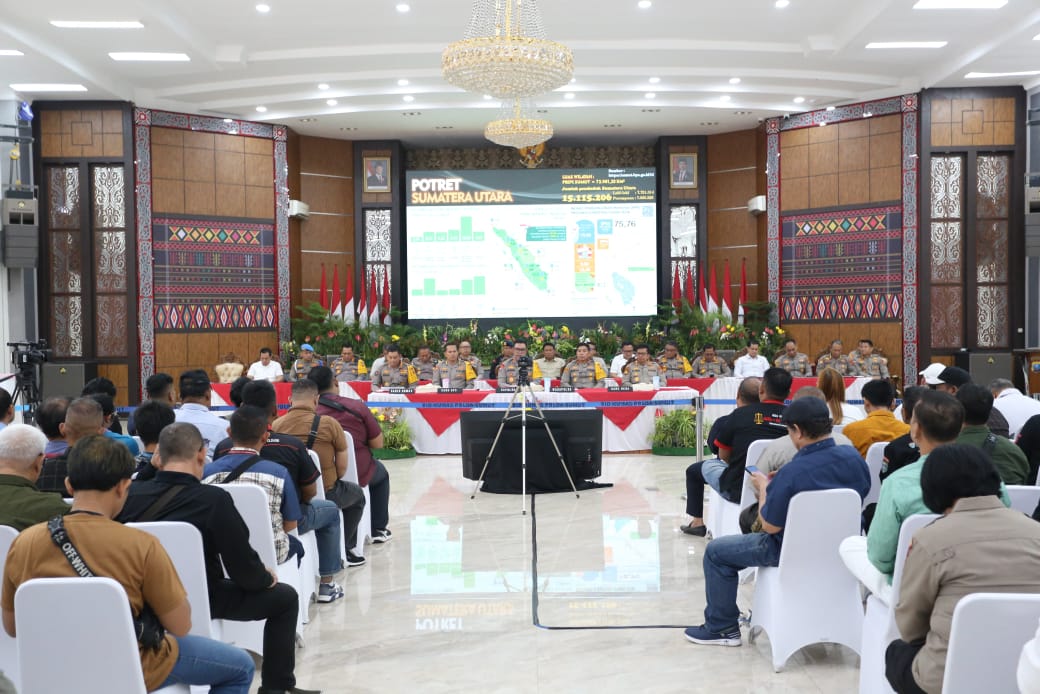 Polda Sumatera Utara paparkan keberhasilannya dalam Refleksi Akhir Tahun 2024 dengan tema “Hadirkan Polisi Transparan, Akuntabel, dan Profesional” pada Jumat, 27 Desember 2024, di Aula Tribrata Polda Sumut.