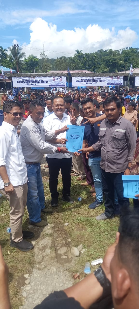 Dengan dikukuhkan dan mengucap sumpah hari ini, kami yakin dan percaya Paslon Firman-Robert akan menang di Dapil 4, lanjutnya disambut sorak sorai tim ‘nomor dua tandro dua.