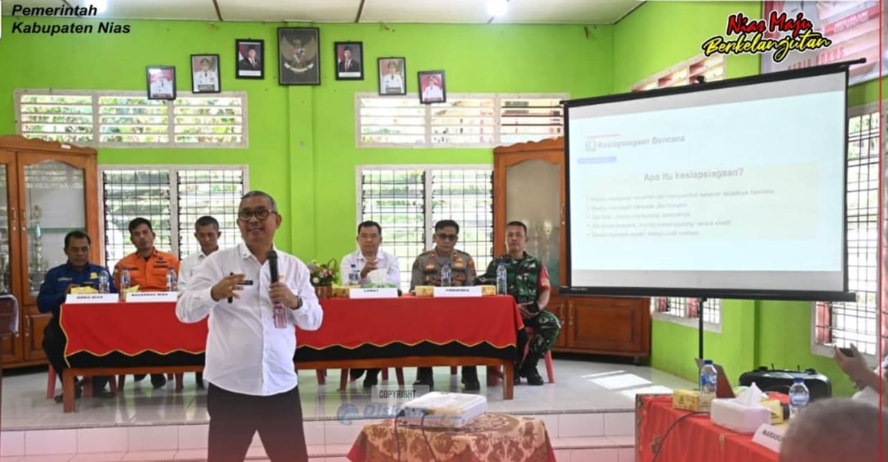Sekretaris Daerah Kabupaten Nias Samson P. Zai, S.H. M.H. menghadiri pelatihan pencegahan dan mitigasi bencana tahun 2025 yang dilaksanakan oleh Pemkab Nias, bertempat di Aula Kantor Kecamatan Hiliserangkai. Rabu, (03/12/2025).