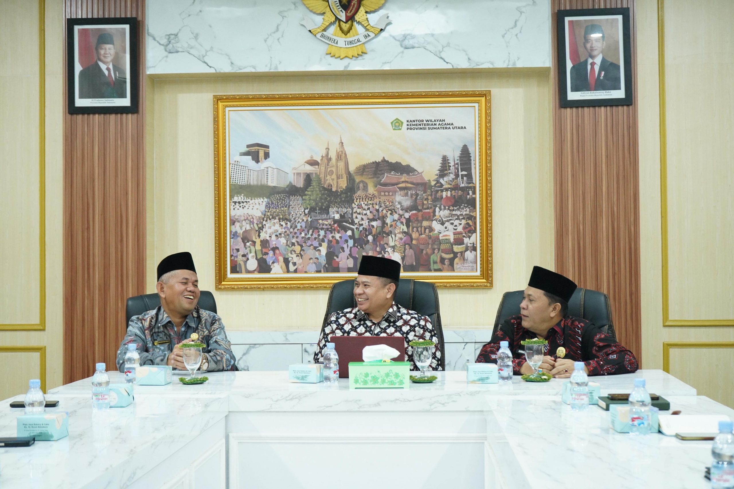 Kepala Kantor Wilayah Kementerian Agama Provinsi Sumatera Utara H. Ahmad Qosbi, S.Ag menyampaikan ucapan selamat datang kepada Staf Ahli Menteri Agama dalam upaya mensinergikan kerukunan umat beragama secara nasional dan khususnya di Sumatera Utara. “