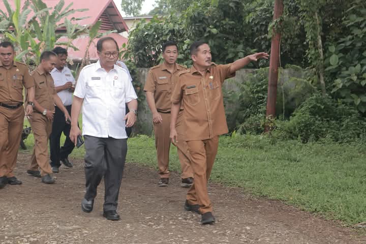 Wakil Wali Kota Gunungsitoli Martinus Lase,S.H dan Wakil Ketua DPRD Gunungsitoli Enrico Ifolala Lase, S.Kom meninjau aset Pemko Gunungsitoli berupa tanah dan gedung terminal penumpang dan sekitarnya yang berlokasi di Desa Faekhu, Kecamatan Gunungsitoli Selatan, Kota Gunungsitoli, Selasa (11/03/2025).