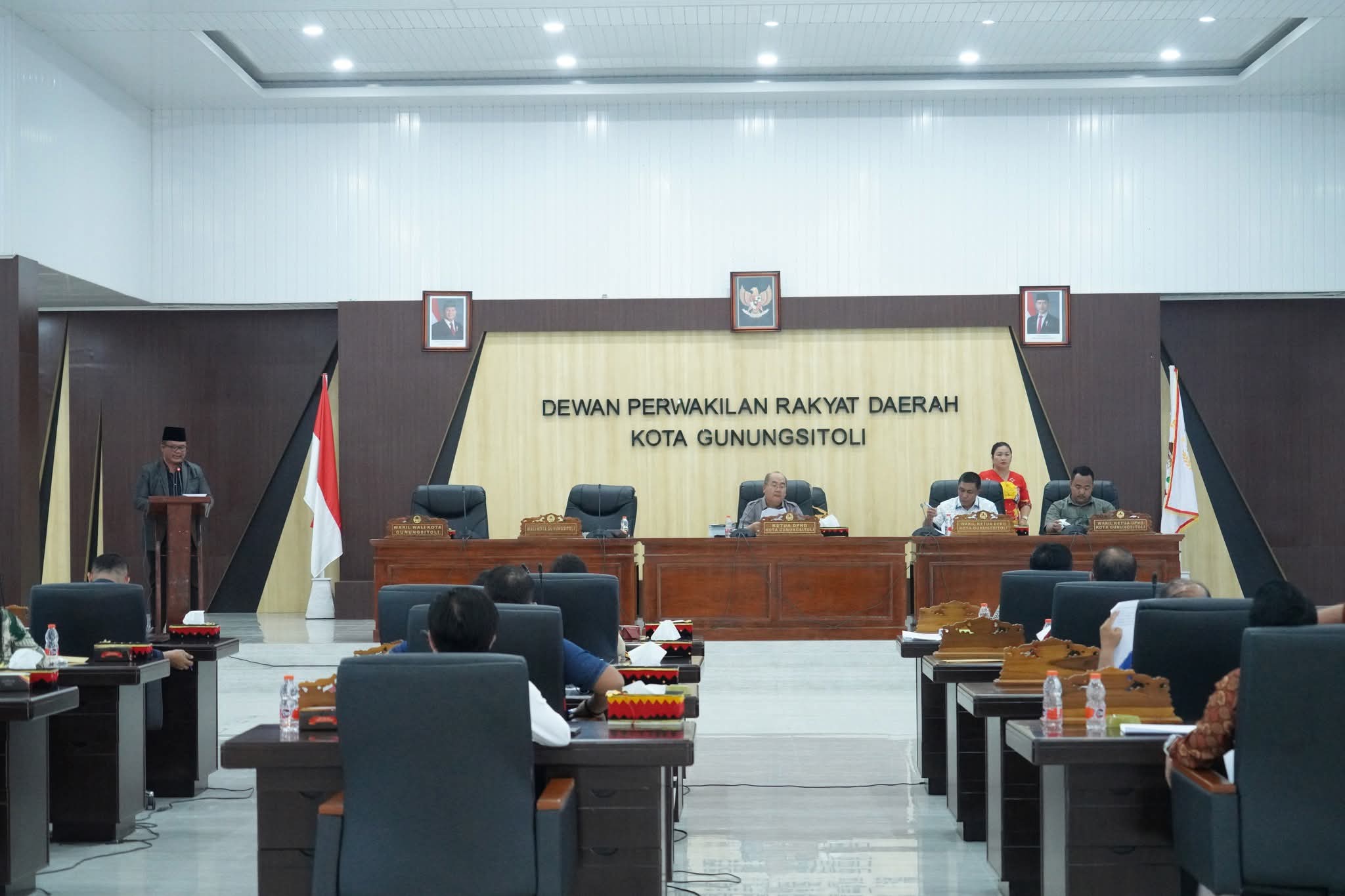 Wali Kota Gunungsitoli, Sowa’a Laoli, S.E.,M.Si menyampaikan penjelasan umum Rancangan Peraturan Daerah (Ranperda) tentang perubahan keempat atas Peraturan Daerah Nomor 8 Tahun 2016 tentang pembentukan dan susunan Perangkat Daerah Kota Gunungsitoli pada rapat paripurna DPRD Kota Gunungsitoli, Kamis (14/8/2025).
