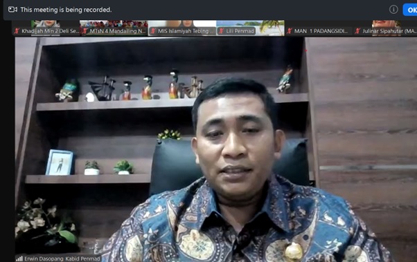 Hal tersebut disampaikan Kabid Penmad saat memberikan bimbingan dan arahan pada Sosialisasi Pencegahan Bullying di Madrasah secara virtual melalui aplikasi Zoom Meeting,Kamis (09/01). Kegiatan ini diikuti oleh Kasi Penmad,Pendis,Bimas Islam,Pembimas, Kepala Madrasah,dan Pengawas,dari berbagai Kabupaten Kota di Sumatera Utara.