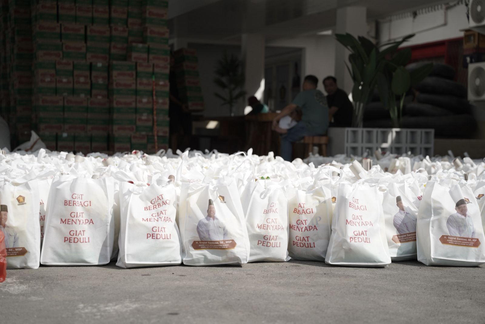 Paket sembako dikirimkan Sekretaris Gerindra Sumut Sugiat Santoso. Anggota DPR yang terpilih dari wilayah Langkat dan daerah lain di daerah pemilihan (dapil) Sumut 3 ini mengirimkan beras hingga makanan instan bagi korban bencana alam.