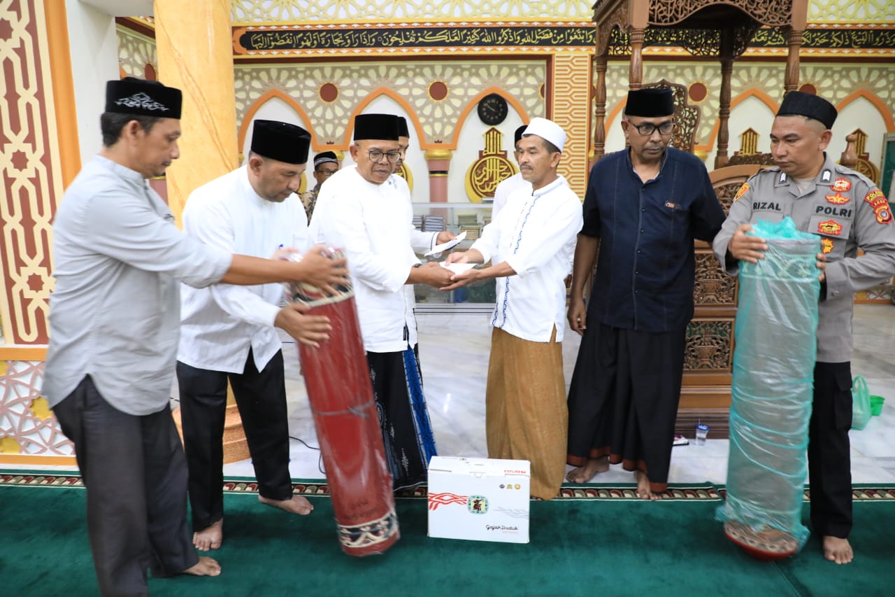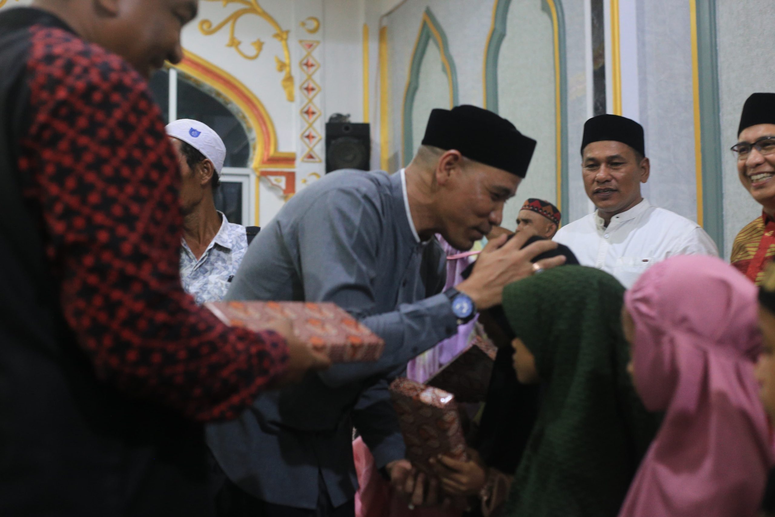 Di dua lokasi ini Sekda Dr A Murtala dan Wabup Tarmizi turut menyerahkan sumbangan untuk menyantuni anak yatim, serta bantuan sajadah panjang untuk mesjid setempat. Bantuan sajadah diterima langsung oleh Imum Syik mesjid, turut didampingi oleh tokoh masyarakat dan pejabat Muspika.