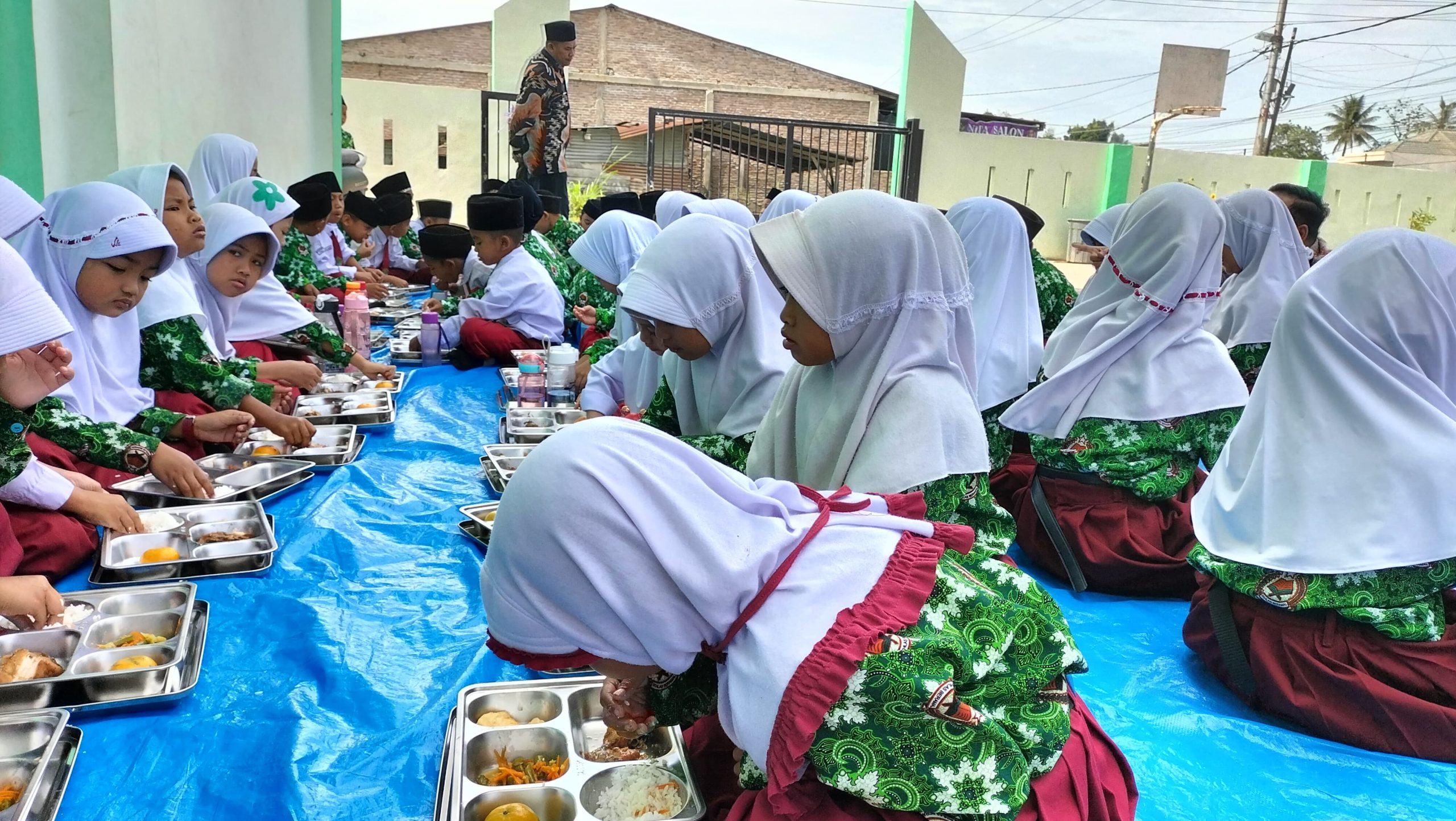 “Menu hari pertama terdiri dari nasi putih, ayam semur, tumis kuning buncis dan wortel, tahu goreng, serta satu buah jeruk. Sebelum menyantap hidangan, para guru mengingatkan siswa untuk mencuci tangan terlebih dahulu. Mereka juga mengajak siswa membaca doa makan bersama. Suasana kebersamaan dan kedisiplinan tampak mewarnai jalannya kegiatan,” ungkapnya.