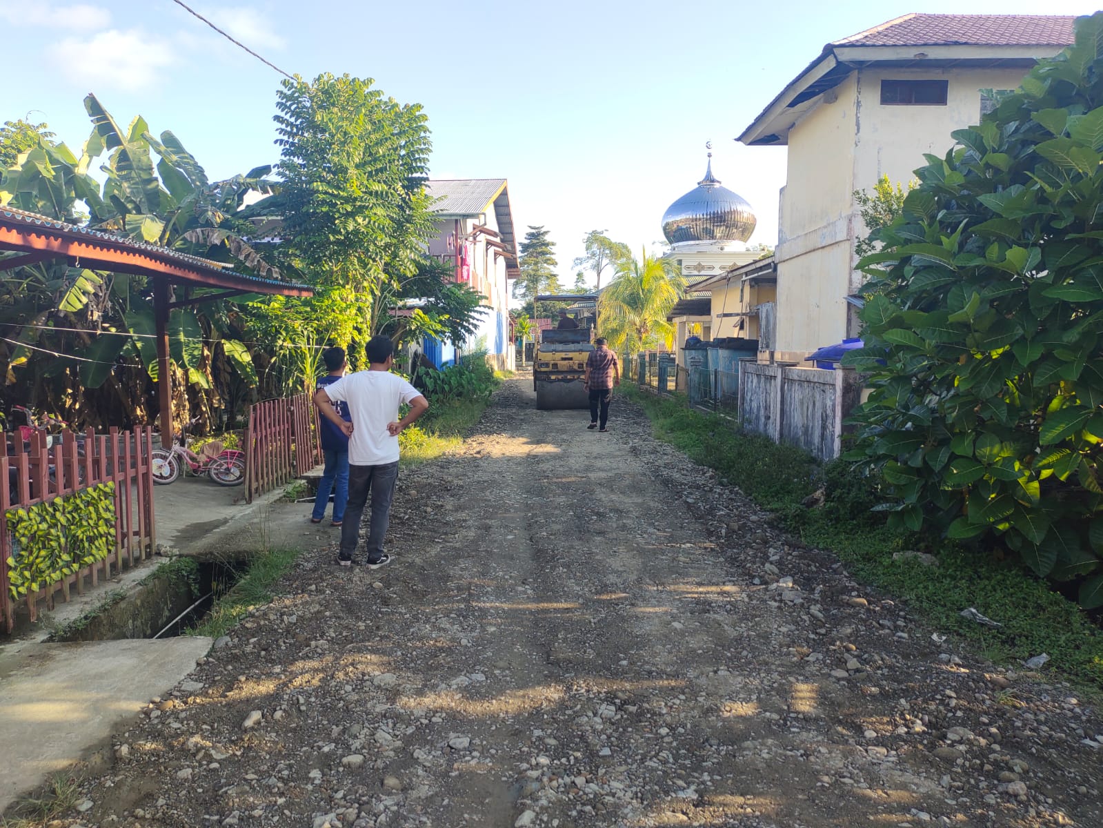 Pemerintah Kabupaten Simeulue melalui Dinas Pekerjaan Umum dan Penataan Ruang (PUPR) mulai melakukan perbaikan Jalan Sentosa yang berada di samping panti asuhan di Desa Amiria Bahagia. Amira Bahagia, Jum’at, 24/4/2026
