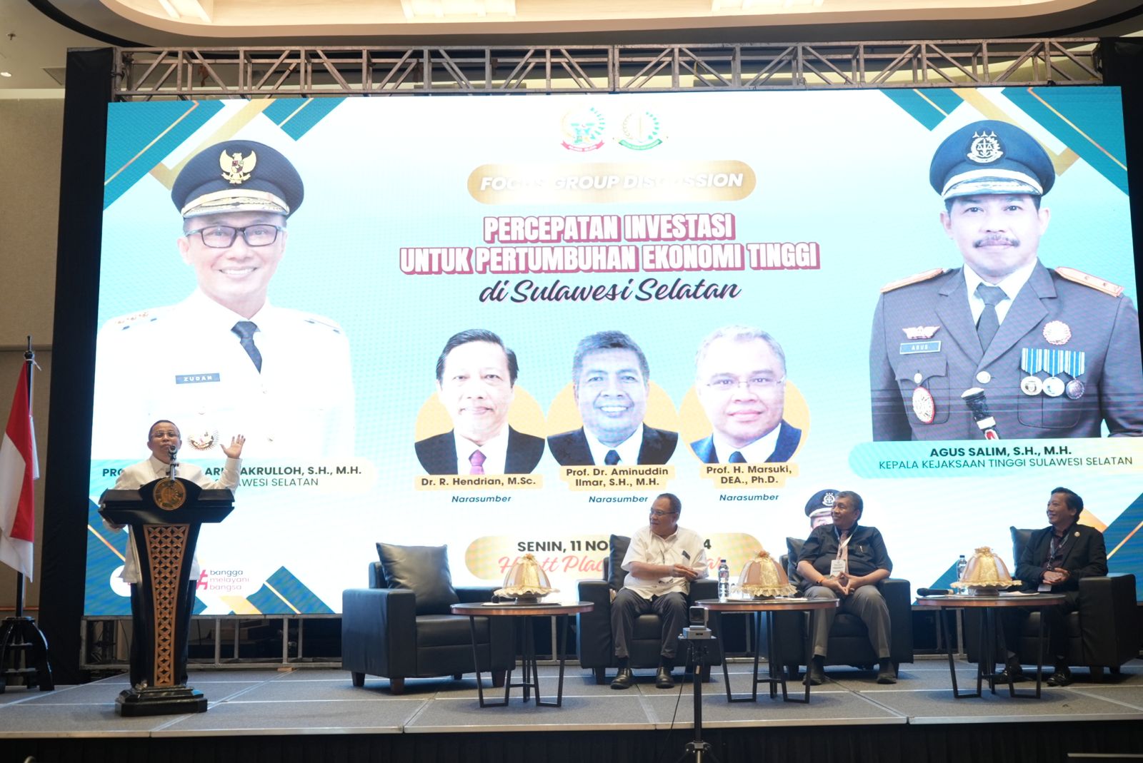 Kejaksaan Tinggi Sulawesi Selatan bersama Pemerintah Provinsi Sulawesi Selatan menggelar Focus Group Discussion (FGD) dengan tema “Percepatan Investasi Untuk Pertumbuhan Ekonomi Tinggi di Sulawesi Selatan” di Hyatt Place Makassar, Senin (11/11/2024).