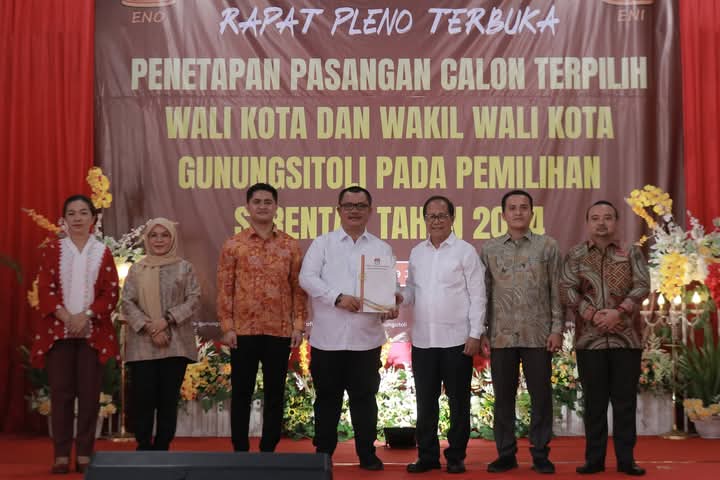 Komisi Pemilihan Umum (KPU) Kota Gunungsitoli menggelar Rapat Pleno Terbuka penetapan Wali Kota dan Wakil Wali Kota Gunungsitoli terpilih dalam Pemilihan Kepala Daerah (Pilkada) serentak 2024.