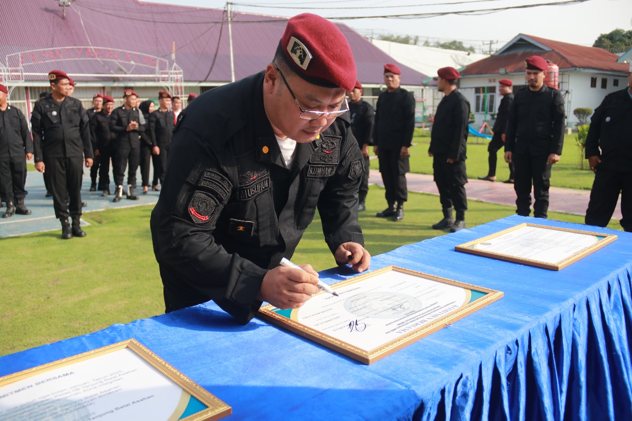 Lembaga Pemasyarakatan (Lapas) Kelas IIB Tanjung Balai Asahan melaksanakan upacara penandatanganan pakta integritas, Kamis (23/1/2025). Acara berlangsung hikmad yang dihadiri seluruh jajaran Lapas Tanjung Balai Asahan dan di lapangan upacara.