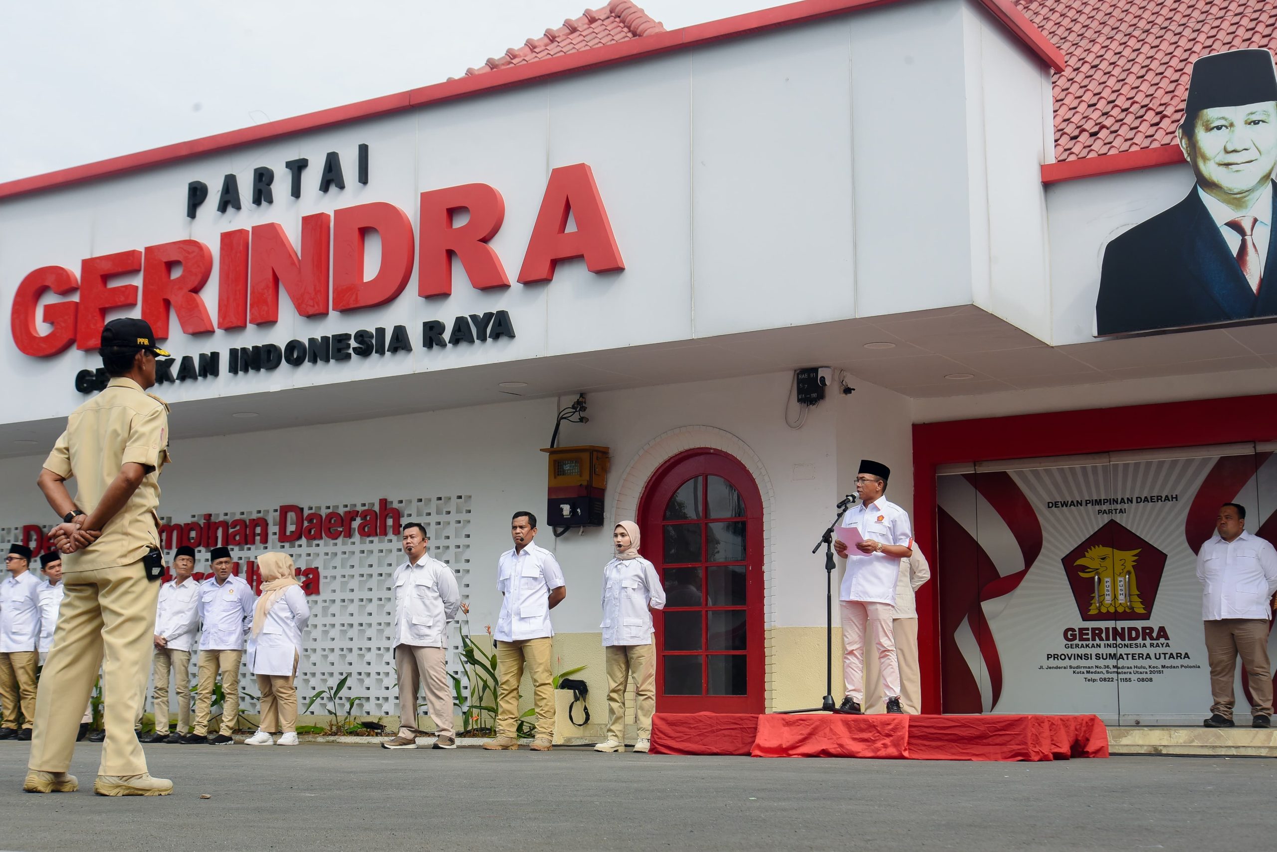 Dalam rangka merayakan Hari Ulang Tahun (HUT) Gerindra ke-17, Dewan Pimpinan Daerah (DPD) Partai Gerindra Sumatera Utara (Sumut) menggelar upacara bendera yang berlangsung khidmat di kantor DPD Gerindra Sumut, Senin (5/2/2025).