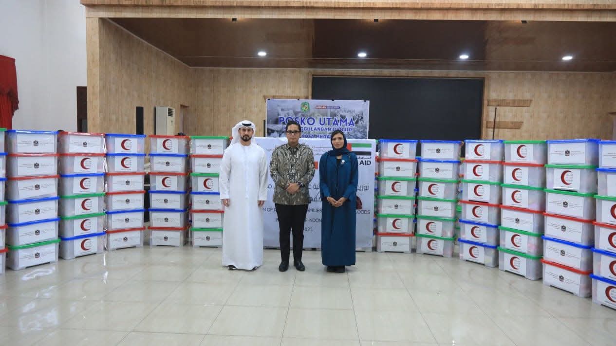 Pemerintah Kota (Pemko) Medan, mengembalikan bantuan dari Pemerintahan Uni Emirat Arab (UEA), yang sebelumnya diserahkan Wakil Duta Besar UEA, Shaima Al Hebsi di Posko Bantuan Bencana Kota Medan, Gedung PKK, Kota Medan, Sabtu 12 Desember 2025.