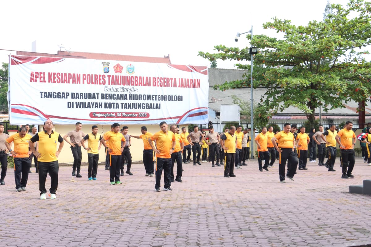 Jajaran Polres Tanjung Balai bersama Bhayangkari Cabang Tanjung Balai menggelar kegiatan pembinaan jasmani dengan melaksanakan senam bersama pada Jumat pagi (7/11) pagi.