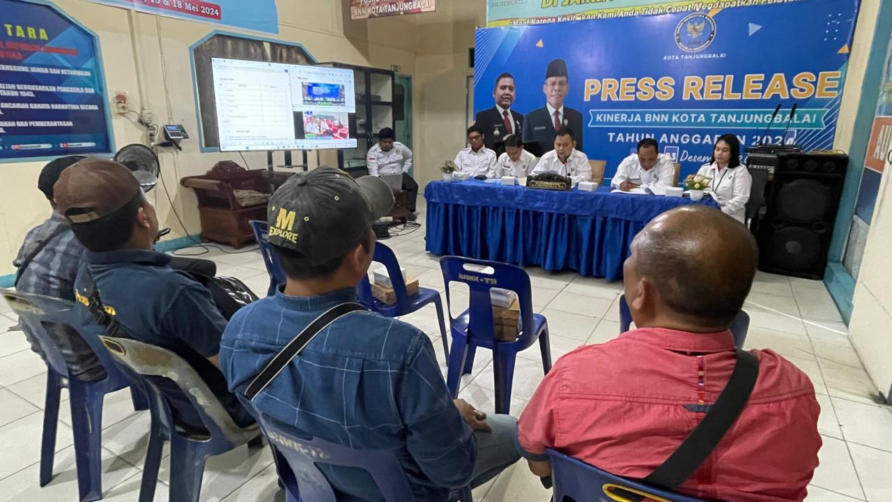 Bersama dengan Wartawan Badan Narkotika Nasional Kota (BNNK) Tanjungbalai menggelar konferensi pers / Press release kinerjanya Tahun Anggaran (TA) 2024.
