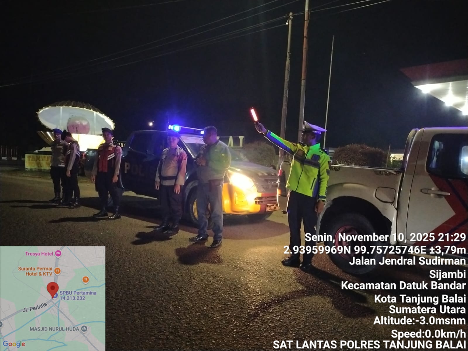 Satuan Lalu Lintas (Sat Lantas) Polres Tanjung balai menggelar kegiatan Blue Light Patrol guna memastikan kota Tanjung balai dalam keadaan aman dan nyaman, Senin (10/11)