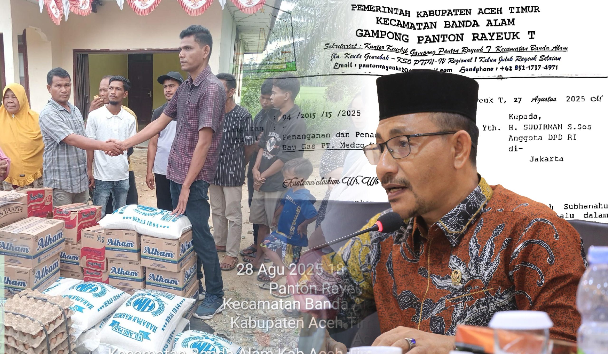 Anggota Dewan Perwakilan Daerah Republik Indonesia (DPD-RI) asal Daerah Pemilihan Aceh, H. Sudirman Haji Uma, S. Sos mengirim bantuan sembako bagi masyarakat Gampong Panton Rayeuk T, Kecamatan Banda Alam Kabupaten Aceh Timur yang terpaksa mengungsi akibat terpapar bau gas dari aktifitas operasional PT. Medco E&P Malaka.
