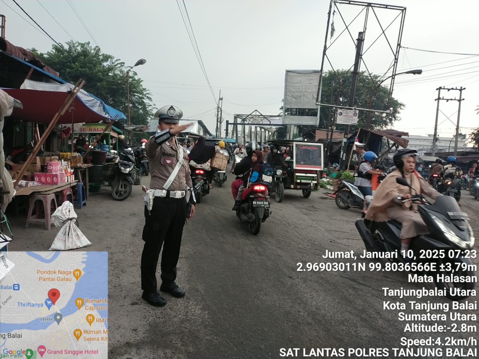 Kegiatan pengaturan arus lalulintas berlangsung pada hari Jumat 10 Januari 2025 Pukul 06.30 Wib dipimpin Kasat Lantas AKP. Banjarnahor dan diikuti personil sat lantas Polres Tanjungbalai.