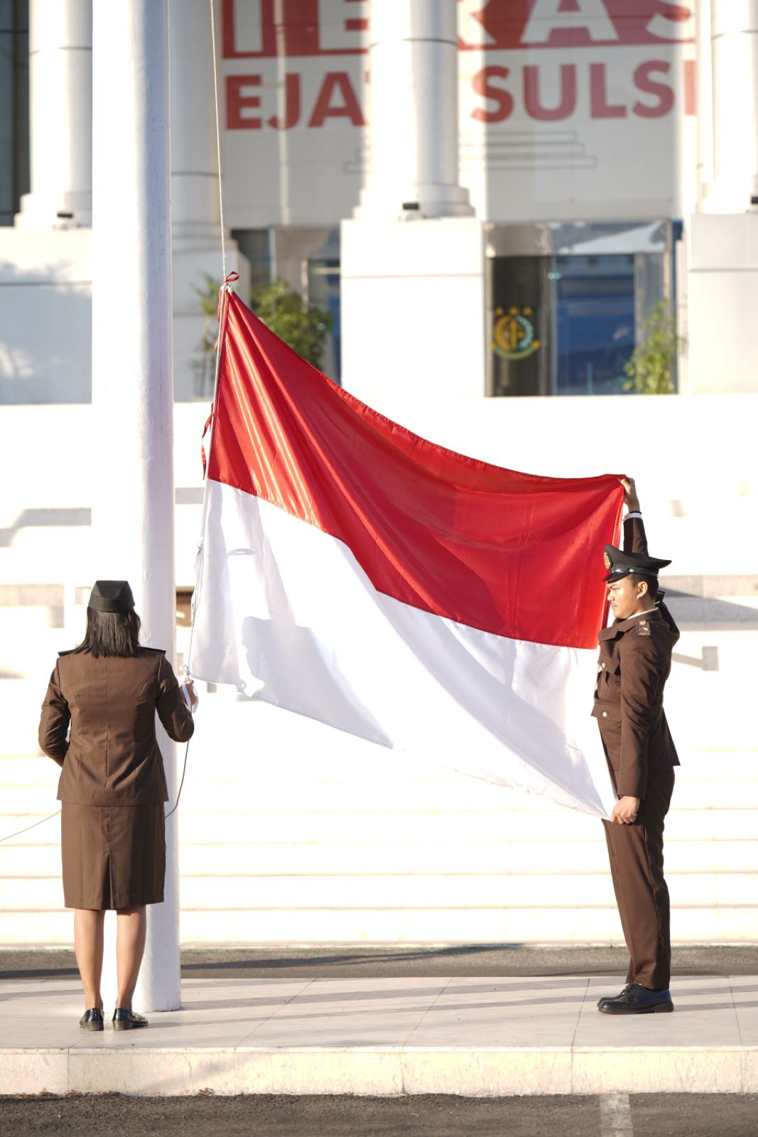 Bertempat di Halaman Kantor Kejaksaan Tinggi Sulawesi Selatan dilaksanakan Upacara Peringatan Hari Kemerdekaan Republik Indonesia Ke-79 Tahun 2024 dengan mengangkat tema “Nusantara Baru Indonesia Maju”.(17/8/24)
